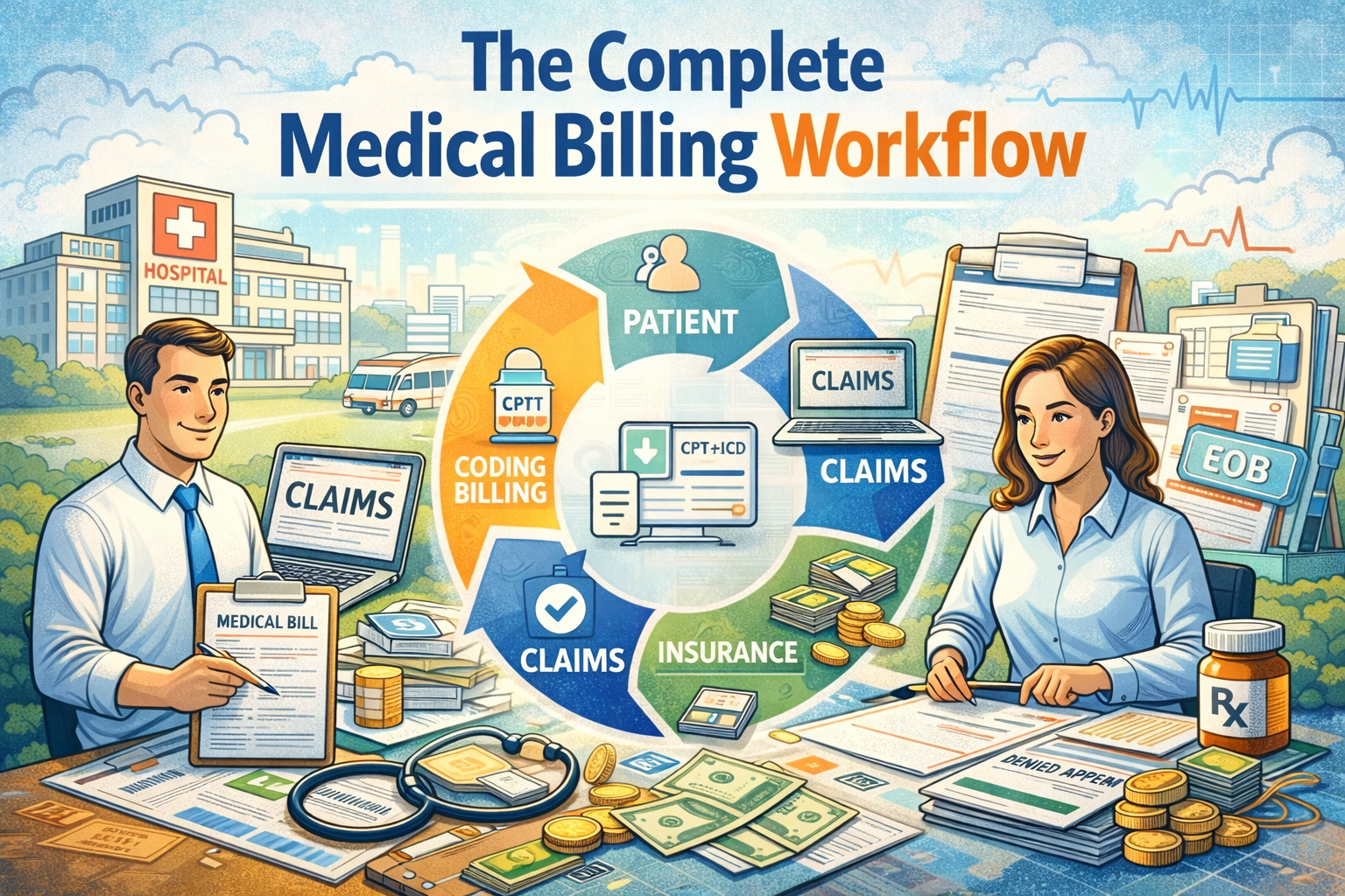 Home Blog The Complete Medical Billing Workflow Learn how patient registration, insurance verification, medical coding, claim submission, payment posting, and